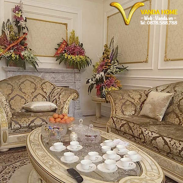 Phòng khách với bộ bàn ghế hoa văn ấn tượng